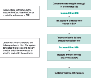 If the customer orders third-party products (line item category TAS in the sales order), the system does not generate deliveries. In this scenario, the system can pass the text to the third-party vendor through the outbound purchase order (outbound PO) IDoc 850.