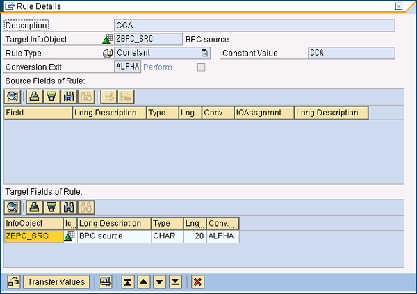 If you assign the constant in our SAP NetWeaver BW transformation, you need to create an InfoObject in SAP NetWeaver BW to store that information (e.g., ZBPC_SRC) as shown in Figure 12.