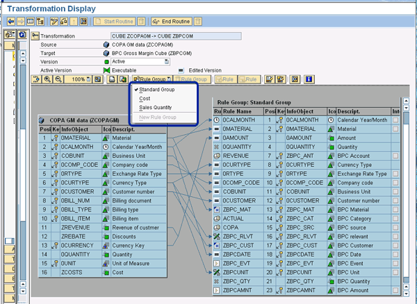 SAP NetWeaver BW demands different key figures for financial amounts and quantities, while SAP BusinessObjects Planning and Consolidation needs to have both combined in one key figure. SAP NetWeaver BW has standard functionality called rule groups that allow you to transform a key figure model to an account-based model without any ABAP coding. You can create rule groups in the SAP NetWeaver BW workbench when defining transformations (data transfer processes [DTPs]). They allow you to create multiple records in SAP NetWeaver BW from one input record. Let’s look at a more detailed example to illustrate the use of rule groups.