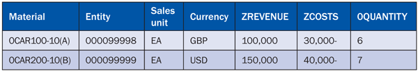 So what about the RPTCURRENCY dimension in SAP BusinessObjects Planning and Consolidation that has to contain both the currency values (i.e., USD and GBP) from the original revenue and cost records, and the unit of measure (UOM), such as eaches (EA), from the original quantity record? You cannot write EA into 0CURRENCY, nor should USD be stored into 0UNIT.