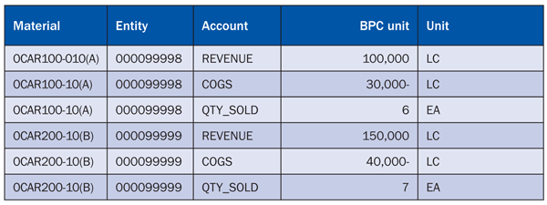 Imagine a car vendor stores its revenue in a currency key figure called ZREVENUE, and its Cost of Goods Sold (COGS) in a key figure called ZCOSTS in an SAP NetWeaver BW InfoCube (Table 3). In addition, the InfoCube contains a third key figure called 0QANTITY of type Quantity, which stores the number of cars sold. SAP BusinessObjects Planning and Consolidation only has one key figure, so how do you get three SAP NetWeaver BW key figures, which are of types quantity and currency amounts, to fit into SAP BusinessObjects Planning and Consolidation? In addition, there is only one SAP BusinessObjects Planning and Consolidation unit field, the report currency dimension RPTCURRENCY. SAP NetWeaver BW has different units for different key figures, such as 0UNIT for quantities and 0CURRENCY for amounts.