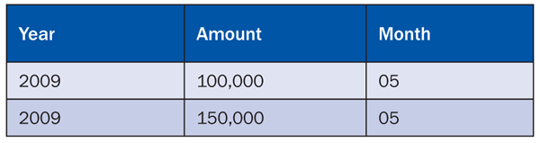 What happens if an external value is stored in several fields instead of one? For example, let’s assume that externally the date is stored in two fields, YEAR and MONTH (Table 9).