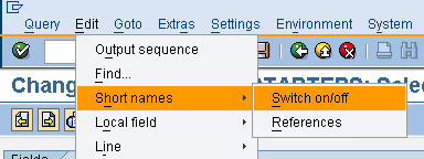 Step 7. The traffic light icons are based on the details in the payment method field. Because you are going to reference this field, you need to give it a short name. To turn on short names, follow menu path Edit > Short names > Switch on/off (Figure 7).