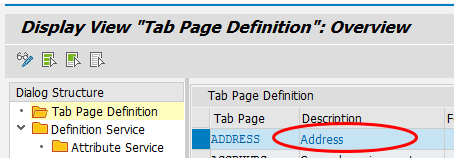 Figure 4, the original text (Description) of the ADDRESS tab page is Address in view T77OMTABUS. Note the technical name of the tab page somewhere (ADDRESS in this case).
