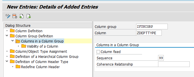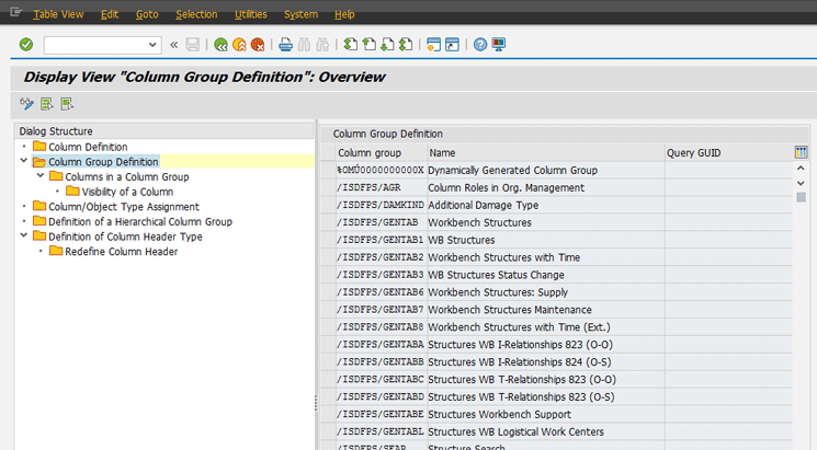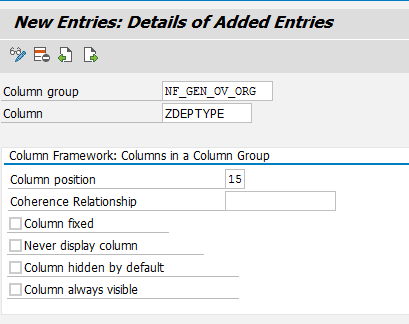 Figure 2), and then click the Technical information button in the screen that pops up. The technical name of the column framework (NF_GEN_OV_ORG, in this case) should be noted somewhere as it will be used in the upcoming parts of this article as an entry in customization tables. (Note all the technical names as you take these steps as you will need them later.