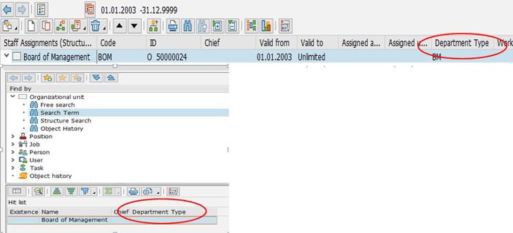 You can also hide an existing tab page or make an invisible tab page visible. To do so, copy the entries of the respective column from the T77OMTABUS view and paste them into the T77OCTABUS view. Or follow SPRO menu path Personnel Management > Organizational Management > Hierarchy Framework > Adjust Tab Pages in Detail Area > Hide/Show Tab Page (