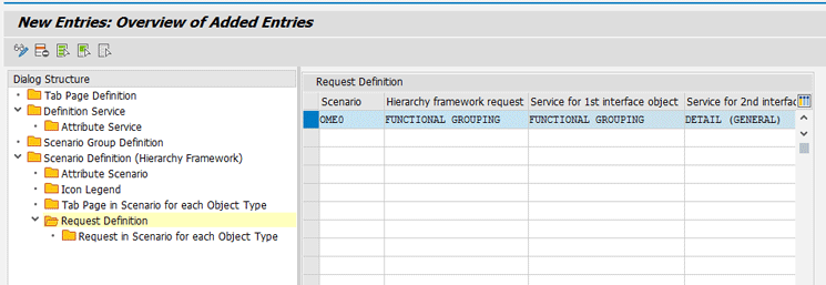 Figure 39), double-click the Scenario Definition (Hierarchy Framework) folder on the left. In the screen that opens on the right, select the respective scenario (OME0) and double-click the Request Definition folder on the left.