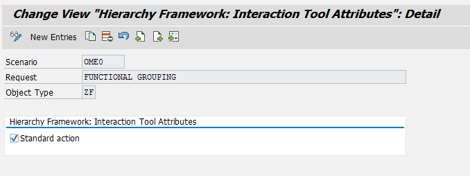 Figure 41). (The alternative SPRO path for this step is Personnel Management > Organizational Management >Hierarchy Framework > Integrate New Object Type > Display Object Type in Structural Overview Object > Assign Your Own Request to an Object Type) If applicable, the standard action should be specified.
