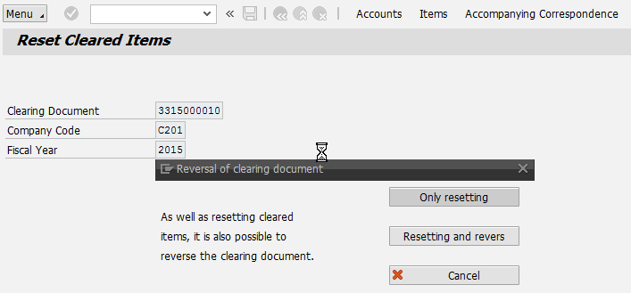 The system then displays a pop-up screen that asks you if you just want to reset the clearing or reverse the posting. Typically, you want to choose the second option, so you click the Resetting and reversing button shown in