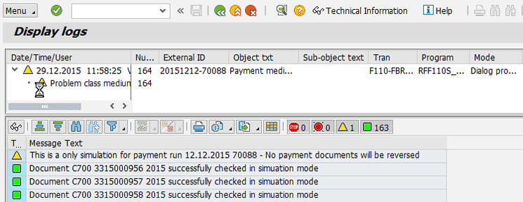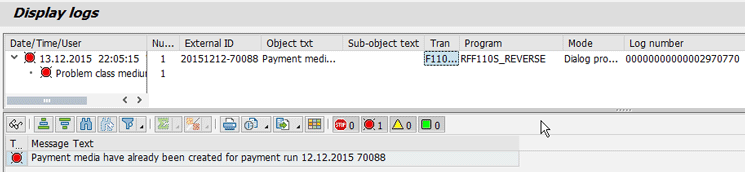 You need to do this deletion anyway, but even though you have done this, and you don’t see the file anymore in the DMEE, the RFF110S_REVERSE program still tells you that you have a file if it was created with the Payment Medium Workbench (PMW) and not with the classical programs RFFOxxxx. Note that a file that is made during the proposal run and not the payment run is considered a file for the system.