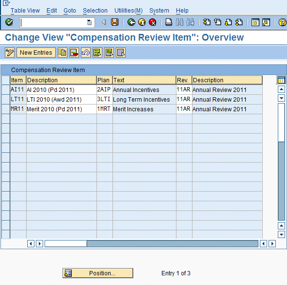 Figure 2 shows an example of naming conventions with table view V_T71ADM09 (Define Compensation Review Items) populated for a merit, bonus, and stock plan.