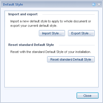 Click Change Default Style to either import a new style or export the existing combination of styles. Figure 10 shows these options.
