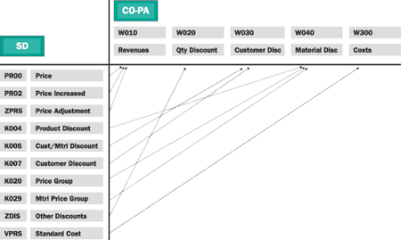 discounts, and VPRS for costs. Condition types are the bridge between SD and CO-PA.