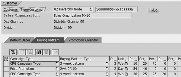 SAP developed buying patterns to facilitate the planning process and to improve the accuracy of the data shared with Advanced Planning and Optimization (APO). They allow the system to spread the promotional volume more realistically than with a straight weekly proration. This altered distribution provides a more accurate demand signal to APO and reduces the chance of stock-outs during promotional events.