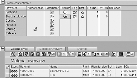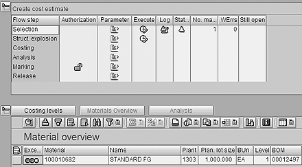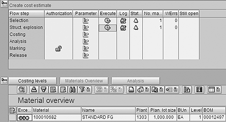 - Costing creates standard cost estimates for all materials in the list generated during the previous two steps.