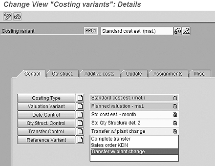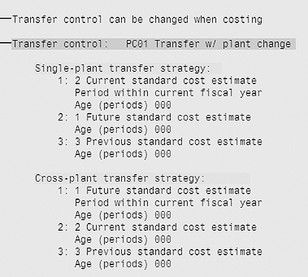 Depending on the configuration of the costing variant entered when you create the costing run, transfer control may default into this screen. It may or may not be changeable.