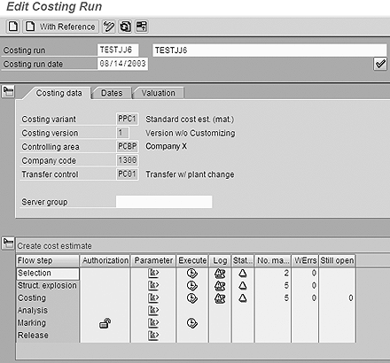 A costing run is used to create and process many cost estimates; it is a way of mass processing cost estimates. When creating a costing run, header information must first be entered, such as name (identifier) and date of the costing run, Controlling area, Company code, and other information, which applies to the whole costing run (Figure 1).