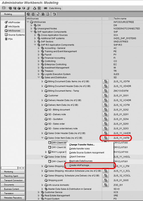 Right-click on the 2LIS_11_VAITM DataSource and select Create InfoPackage