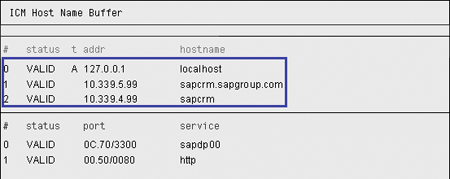 If method 1 does not resolve your issue, you may need to validate parameters in mySAP CRM. Usually the Basis team performs this step when it sets up the system according to SAP best practices and installation procedures. However, you may find some parameters were missed or have incorrect settings assigned. In any case, you should review the parameters ms/server_port_0, icm/server_port_0, and icm/host_name_full (Table 2).