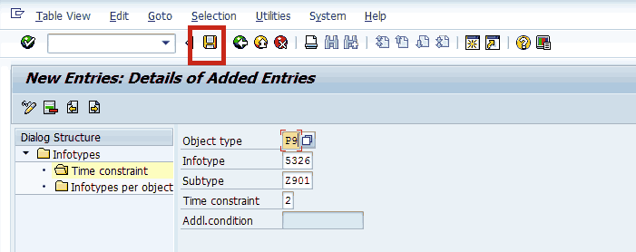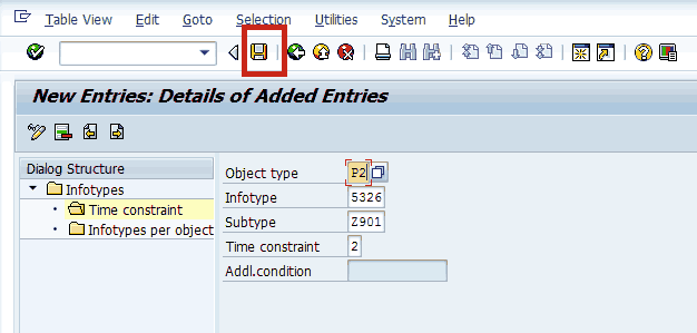 Repeat the steps as outlined for Figures 3 to 9 and similarly configure object types for the remaining infotypes: 5302, 5304, 5306, 5307, 5311, 5313, 5315, 5326, 5337, and 5338.