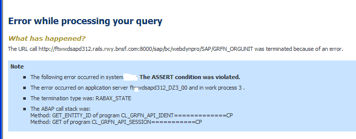 - An administrator used power transactions GRFN_STR_CHANGE to modify data and could not handle the inconsistencies.