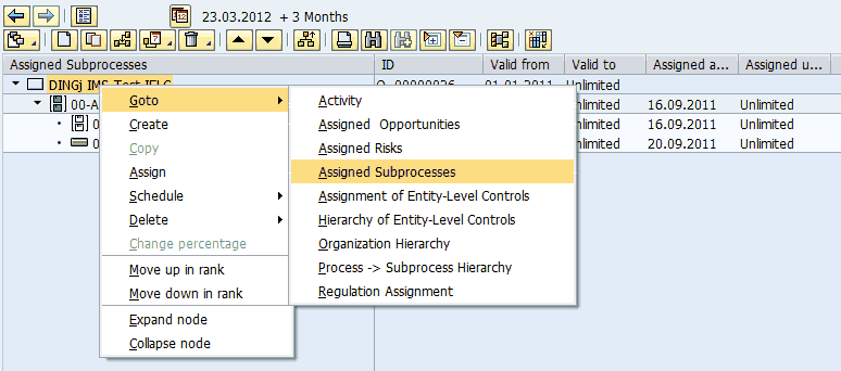 Check the assigned subprocesses to the organization by selecting the Assigned Subprocesses option for the chosen organization