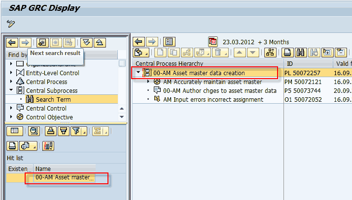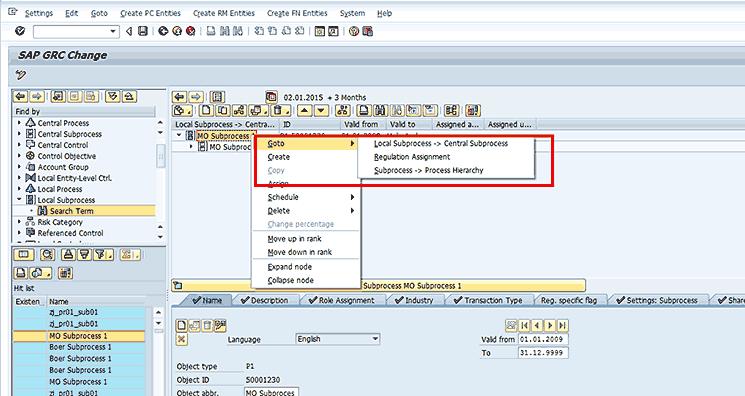 Right-click the name of the local subprocess (e.g., 00-AM Asset master) and select Goto and Subprocess > Process Hierarchy from the menu (Figure 16).