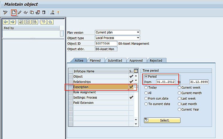 There is inconsistency in master data stored in infotypes. To find inconsistencies and correct them, you need to know how the relevant information for master data and assessment is stored. To do this step, execute transaction codes OOIT and OOSU to display and configure new infotypes and subtypes in SAP Process Control 10.1.