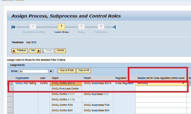 3. Do not assign the same functional role to a different level or different regulation. For example, the role defined for a CEO/CFO at the corporate level should not be assigned to the Organization owner. Similarly, a role defined for a Sarbanes-Oxley regulation is not defined for FDA.