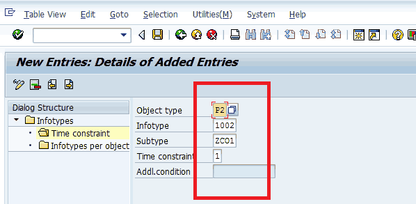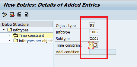 You also have to configure the same subtype for local control to make data consistent. To complete this step, again you select the Time constraint folder (Figure 41) and click the New Entries button. In the refreshed screen (Figure 43) configure subtype ZC01 for local control and click the save icon (not shown) to save your data.