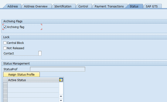 Business partners in SAP Global Trade Services are your customers or vendors whom you transfer from the feeder (SAP ERP Central Component [ECC]) system. Using archiving you can store business partners that are no longer required from the system database. As a prerequisite for archiving of business partners, you must ensure that all the business partners that you wish to archive have the Archiving flag check box marked. Use transaction code BP in your SAP Global Trade Services system (Figure 1). Enter your business partner number in the Status tab and set the flag for archiving to make the business partner eligible for archiving.