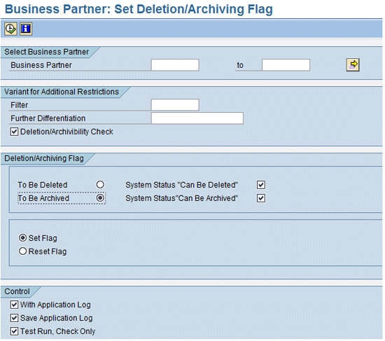 If you want to set the Archiving flag for multiple business partners at once, execute transaction code BUPA_PRE_DA in the SAP Global Trade Services system (Figure 2).