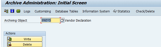 To write the archived vendor declarations data in a file, click the Write button. To delete the vendor declarations data from the system database, click the Delete button. When you archive vendor declarations, some standard tables are affected (Table 6).