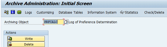 To write the archived log of preference determination data in a file, click the Write button. To delete the log of preference determination data from the system database, click the Delete button. When you archive the log of preference determination, some standard tables that are affected (Table 7).