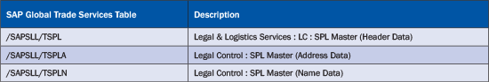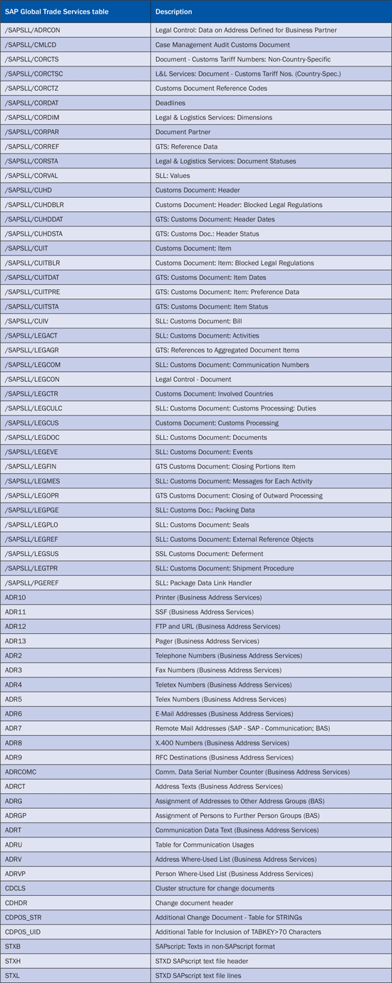 Clicking the Write button allows you to write the archived data in a file. Clicking the Delete button deletes the sanctioned-party list master data from the system database. After you archive the sanctioned-party list master data from the system, some standard SAP Global Trade Services tables are affected. These are the tables from which the data is archived (Table 2).