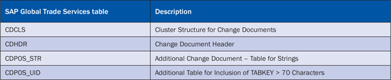 To write the archived data in a file click the Write button. To delete the change documents data from the system database, click the Delete button. When you archive change documents, some standard tables are affected (Table 4).
