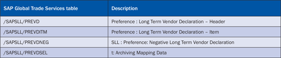 As part of the NAFTA/EU trade agreements you request long-term vendor declarations from your suppliers so that your importers can claim preferential customs duties. This request is done using the preference processing functionality in the Risk Management module of SAP Global Trade Services. The vendor declarations are stored in SAP Global Trade Services. You need to archive these declarations if the data is no longer needed. Use the standard archiving object PREVD to archive vendor declarations using transaction SARA (Figure 8).