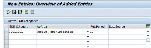 The system asks for a retention period in days of each EDR category. This retention period indicates the time period for which the EDRs in this EDR category must be maintained in the system and not deleted. Save the entry in this transaction to activate the EDR category.