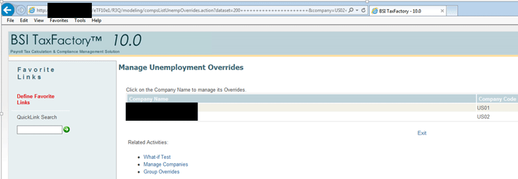 Click one of the existing tax companies created earlier and any existing overrides for that tax company are brought up, and you have the option to create a new override (Figure 15).