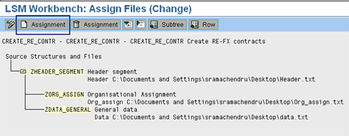 Step 1. Specify the files. Maintain the data in the Excel file and convert it into a delimited text file such as Notepad. In my example, you need three files: one each for ZHEADER_SEGMENT, ZORG_ASSIGN, and ZDATA_GENERAL. Enter the file path and fill the details as shown in the screen in