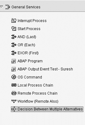 New in SAP NetWeaver BI 7.0, the Decision Between Multiple Alternatives process type allows you to configure a process chain to have specific outcomes when certain conditions are met. SAP NetWeaver BI offers several system variables that you can use to evaluate these conditions such as system date, system time, day of the week, time zone, and application server.