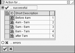 After adding these rows, enter a description for each and assign a different event option for each row using the drop- down menu. In this menu, you can also assign an error event. If you do so, it causes the entire process chain to error. In this example, you do not want your process chain to report an error because all possible system times have been accounted for, and there is no system time that should cause the chain to fail. Therefore, you do not need to assign the error event option.