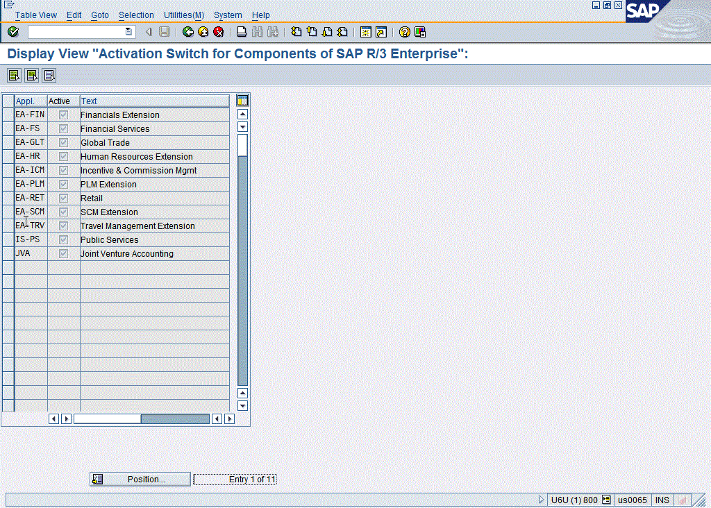 You should also be aware that if you are using SAP ERP Central Component (ECC) 5.0 or 6.0, the alternative valuation run is automatically part of your menu structure. If you are using R/3 Enterprise, then you first have to activate the extension EA-FIN to gain access to the functions. To do this, select the top entry in the IMG, Activation Switch for SAP R/3 Enterprise Extension Set, and choose the application EA-FIN (Financials Extension) as shown in Figure 1.