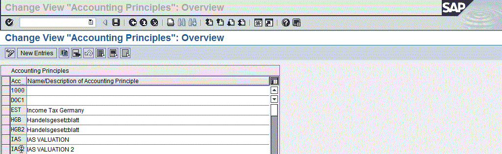 If you are working with multiple accounting approaches, then you should also specify which accounting approach you are following in this valuation run by making an entry in the Accounting Principle field. The accounting principles are defined in the IMG using Financial Accounting > Financial Accounting Global Settings > Company Code > Accounting Principles and Additional Ledgers > Define Accounting Principles, as shown in Figure 5. You then link this accounting principle with the appropriate ledger by following the same path in the IMG and choosing Assign Accounting Principle to Ledger.