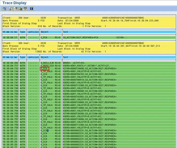 You might wonder if there is a more effective way to restrict the cost center report display by company code. To do this, you can run an authorization trace for a cost center report and find out the result (Figure 8). From the authorization trace, I can find out about another authorization object, K_CCA, being checked in the transaction. Upon more evaluation and analysis of K_CCA, I find that this authorization can fulfill the company’s requirement to restrict the cost center display by company code (or region).