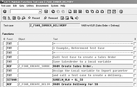 Use transaction SCAT to create a referenced test case Z_FIAR_SORDER_DELIVERY and refer to the two test cases — Z_FIAR_CREATE_SORDER and Z_FIAR_CREATE_DELIVERY (Figure 9).