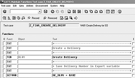 When the delivery document is saved, the system generates the delivery document number. Store this delivery number in an export parameter &E_DLVY and the test case will look like what you see in Figure 8.