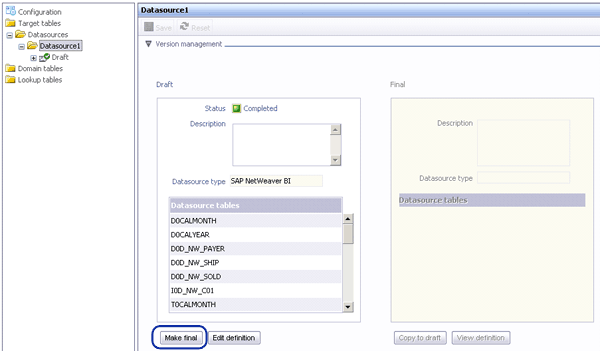 Step 11. Navigate to the Datasources folder on the left side of the screen (Figure 30). Click the Make final button and close the Data Federator Designer.