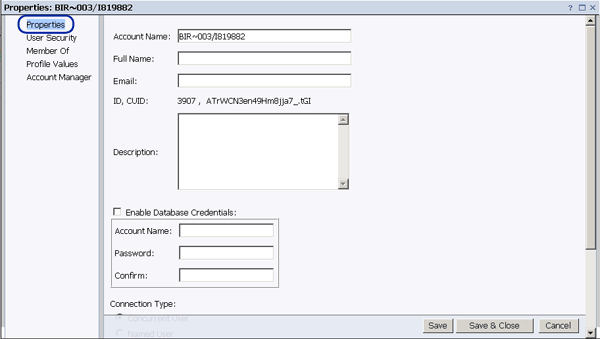 Step 4. Right-click the user and select Properties on the left side of the screen (Figure 27). Enable the Enable Database Credentials check box.