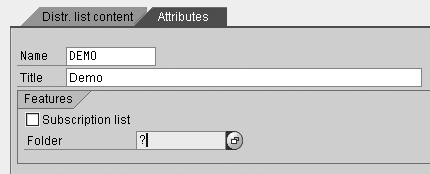 DISTR: Use this attribute if you want to access a distribution list that is stored in the general folders in SAP Office (transaction SO04). This is necessary if you want to send the mail to an email address outside of SAP. The return value is set to X to use the distribution list.
